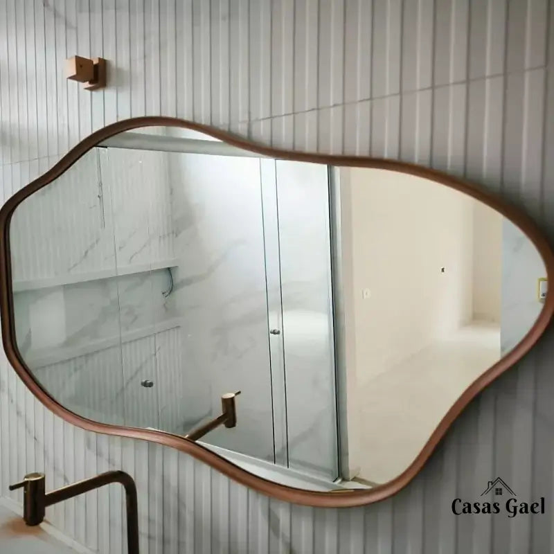 O Espelho Grande Orgânico com Moldura transforma qualquer ambiente com suas curvas suaves e design sofisticado. Seu formato orgânico adiciona charme e um toque de modernidade à decoração, valorizando o espaço com elegância.
