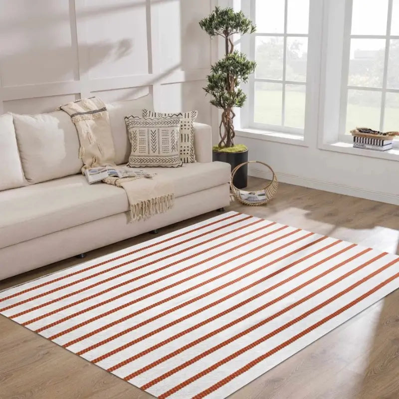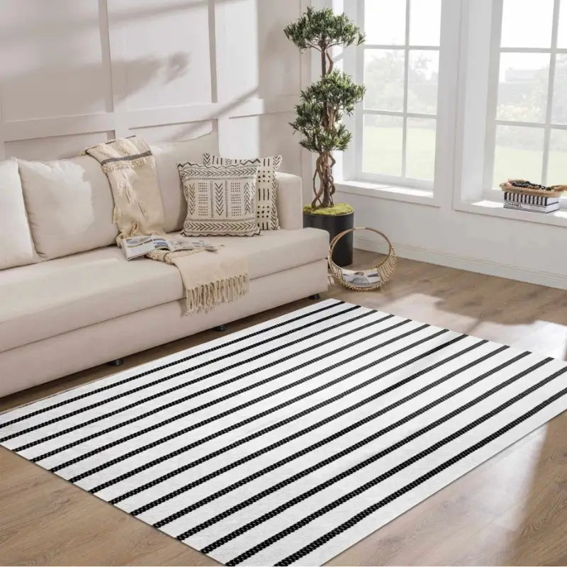 Transforme a decoração com o Tapete Listrado em Algodão 150x200cm. Macio e confortável, ele traz aconchego ao espaço. Suas listras modernas combinam com diferentes estilos de decoração.
